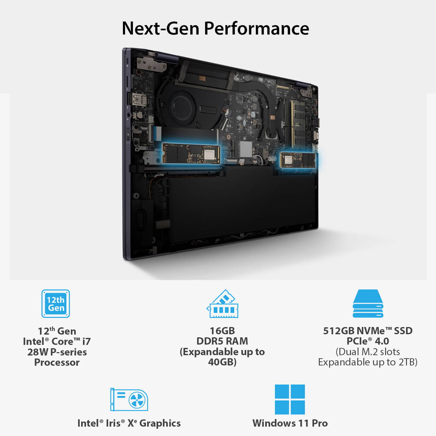 8GB DDR5 on board, 8GB DDR5 SO-DIMM, Memory Max Up to:40GB