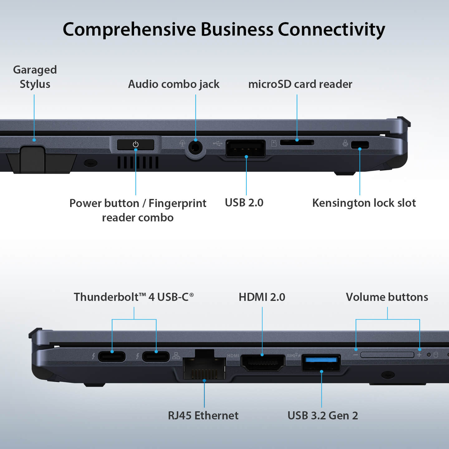 Fingerprint sensor integrated with Power Key, Kensington Nano Security Slot™(6x 2.5mm), Trusted Platform Module (TPM) 2.0